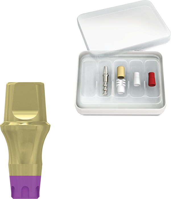 The MIS CPK allows for a complete restoration procedure: Closed tray impression taking, provisional restoration, and final restoration; without compromising or disturbing the implant-abutment interface. The abutment is installed once, in the implant, and is not removed again, and is used in the final restoration. This is recommended in cases of single or multiple implants which do not require angulation correction.