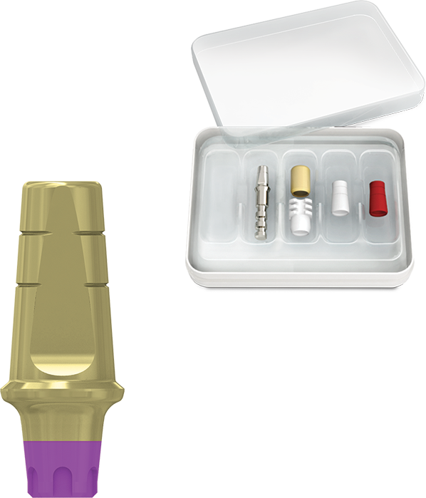 The MIS CPK allows for a complete restoration procedure: Closed tray impression taking, provisional restoration, and final restoration; without compromising or disturbing the implant-abutment interface. The abutment is installed once, in the implant, and is not removed again, and is used in the final restoration. This is recommended in cases of single or multiple implants which do not require angulation correction.
