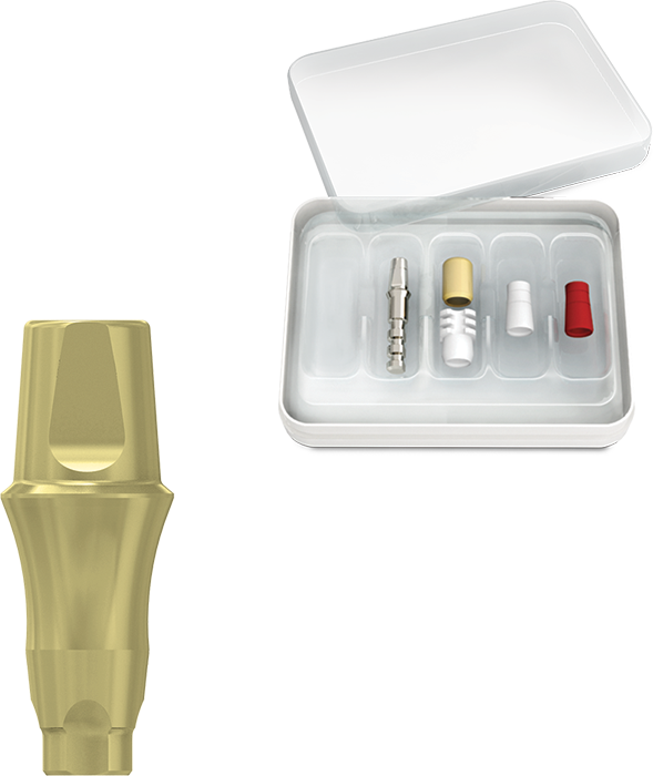 The MIS CPK allows for a complete restoration procedure: Closed tray impression taking, provisional restoration, and final restoration; without compromising or disturbing the implant-abutment interface. The abutment is installed once, in the implant, and is not removed again, and is used in the final restoration. This is recommended in cases of single or multiple implants which do not require angulation correction.