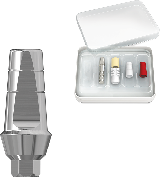 The MIS CPK allows for a complete restoration procedure: Closed tray impression taking, provisional restoration, and final restoration; without compromising or disturbing the implant-abutment interface. The abutment is installed once, in the implant, and is not removed again, and is used in the final restoration. This is recommended in cases of single or multiple implants which do not require angulation correction.