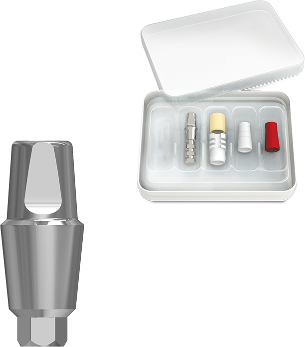 The MIS CPK allows for a complete restoration procedure: Closed tray impression taking, provisional restoration, and final restoration; without compromising or disturbing the implant-abutment interface. The abutment is installed once, in the implant, and is not removed again, and is used in the final restoration. This is recommended in cases of single or multiple implants which do not require angulation correction.