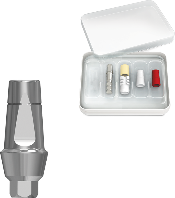 The MIS CPK allows for a complete restoration procedure: Closed tray impression taking, provisional restoration, and final restoration; without compromising or disturbing the implant-abutment interface. The abutment is installed once, in the implant, and is not removed again, and is used in the final restoration. This is recommended in cases of single or multiple implants which do not require angulation correction.