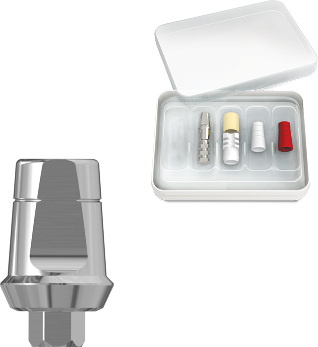 The MIS CPK allows for a complete restoration procedure: Closed tray impression taking, provisional restoration, and final restoration; without compromising or disturbing the implant-abutment interface. The abutment is installed once, in the implant, and is not removed again, and is used in the final restoration. This is recommended in cases of single or multiple implants which do not require angulation correction.