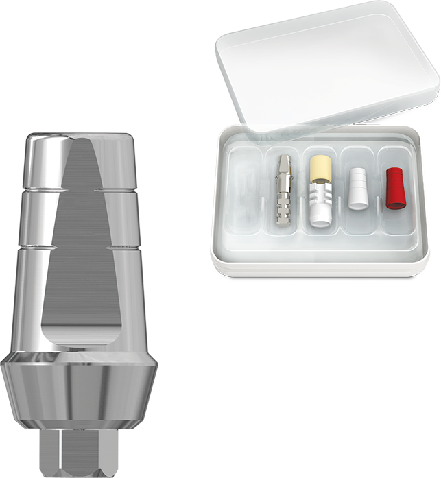 The MIS CPK allows for a complete restoration procedure: Closed tray impression taking, provisional restoration, and final restoration; without compromising or disturbing the implant-abutment interface. The abutment is installed once, in the implant, and is not removed again, and is used in the final restoration. This is recommended in cases of single or multiple implants which do not require angulation correction.