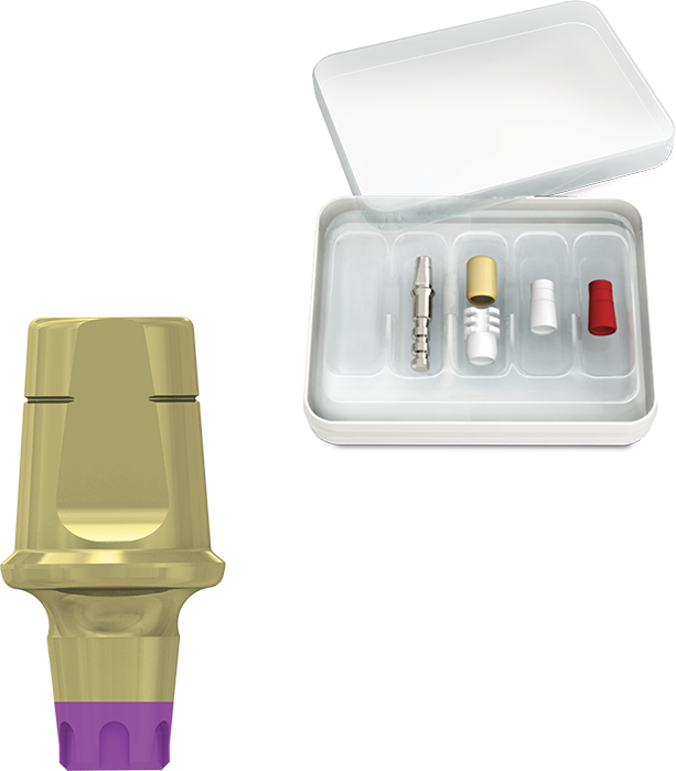 The MIS CPK allows for a complete restoration procedure: Closed tray impression taking, provisional restoration, and final restoration; without compromising or disturbing the implant-abutment interface. The abutment is installed once, in the implant, and is not removed again, and is used in the final restoration. This is recommended in cases of single or multiple implants which do not require angulation correction.