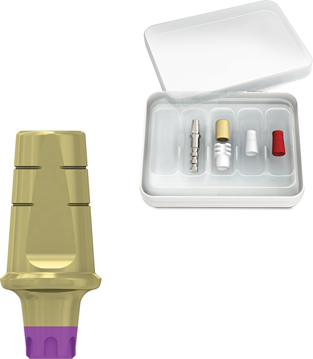 The MIS CPK allows for a complete restoration procedure: Closed tray impression taking, provisional restoration, and final restoration; without compromising or disturbing the implant-abutment interface. The abutment is installed once, in the implant, and is not removed again, and is used in the final restoration. This is recommended in cases of single or multiple implants which do not require angulation correction.