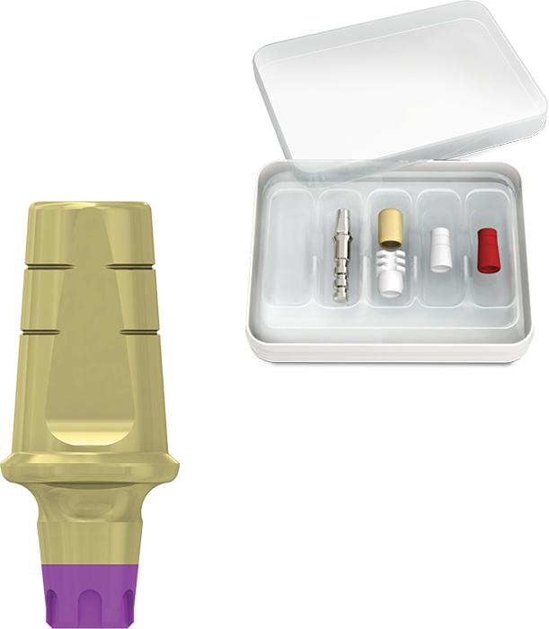 The MIS CPK allows for a complete restoration procedure: Closed tray impression taking, provisional restoration, and final restoration; without compromising or disturbing the implant-abutment interface. The abutment is installed once, in the implant, and is not removed again, and is used in the final restoration. This is recommended in cases of single or multiple implants which do not require angulation correction.
