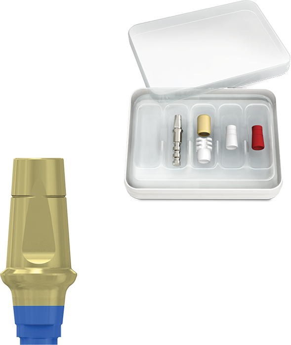 The MIS CPK allows for a complete restoration procedure: Closed tray impression taking, provisional restoration, and final restoration; without compromising or disturbing the implant-abutment interface. The abutment is installed once, in the implant, and is not removed again, and is used in the final restoration. This is recommended in cases of single or multiple implants which do not require angulation correction.