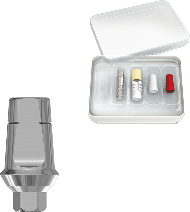 The MIS CPK allows for a complete restoration procedure: Closed tray impression taking, provisional restoration, and final restoration; without compromising or disturbing the implant-abutment interface. The abutment is installed once, in the implant, and is not removed again, and is used in the final restoration. This is recommended in cases of single or multiple implants which do not require angulation correction.