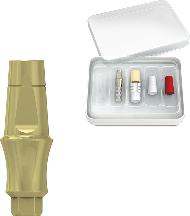 The MIS CPK allows for a complete restoration procedure: Closed tray impression taking, provisional restoration, and final restoration; without compromising or disturbing the implant-abutment interface. The abutment is installed once, in the implant, and is not removed again, and is used in the final restoration. This is recommended in cases of single or multiple implants which do not require angulation correction.